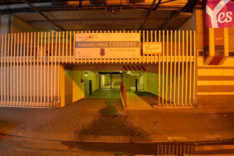 L’entrée du parking se situe au 14 rue Robert de Flers. Le panneau Yespark vous indique l’entrée du parking. Ouvrez les différents accès grâce à votre application Yespark.
