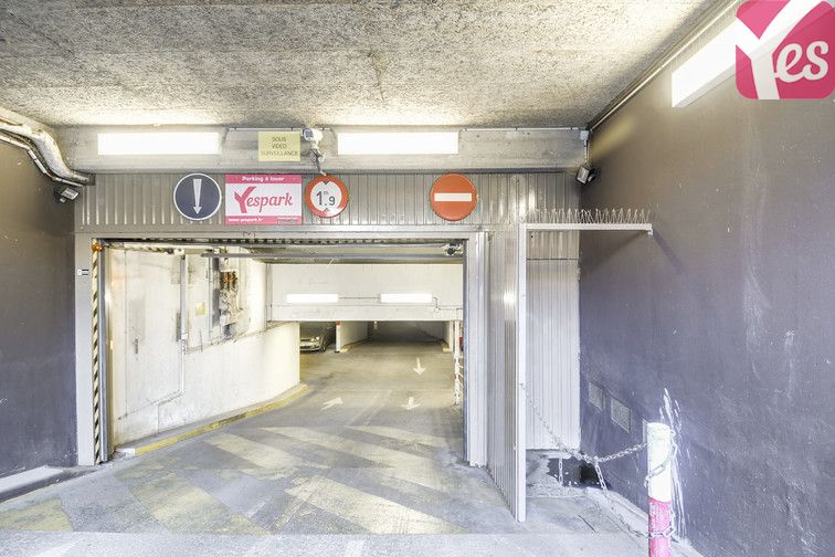 L’entrée du parking se situe au 44 rue de l'Amiral Roussin. Le panneau Yespark vous indique l’entrée du parking.